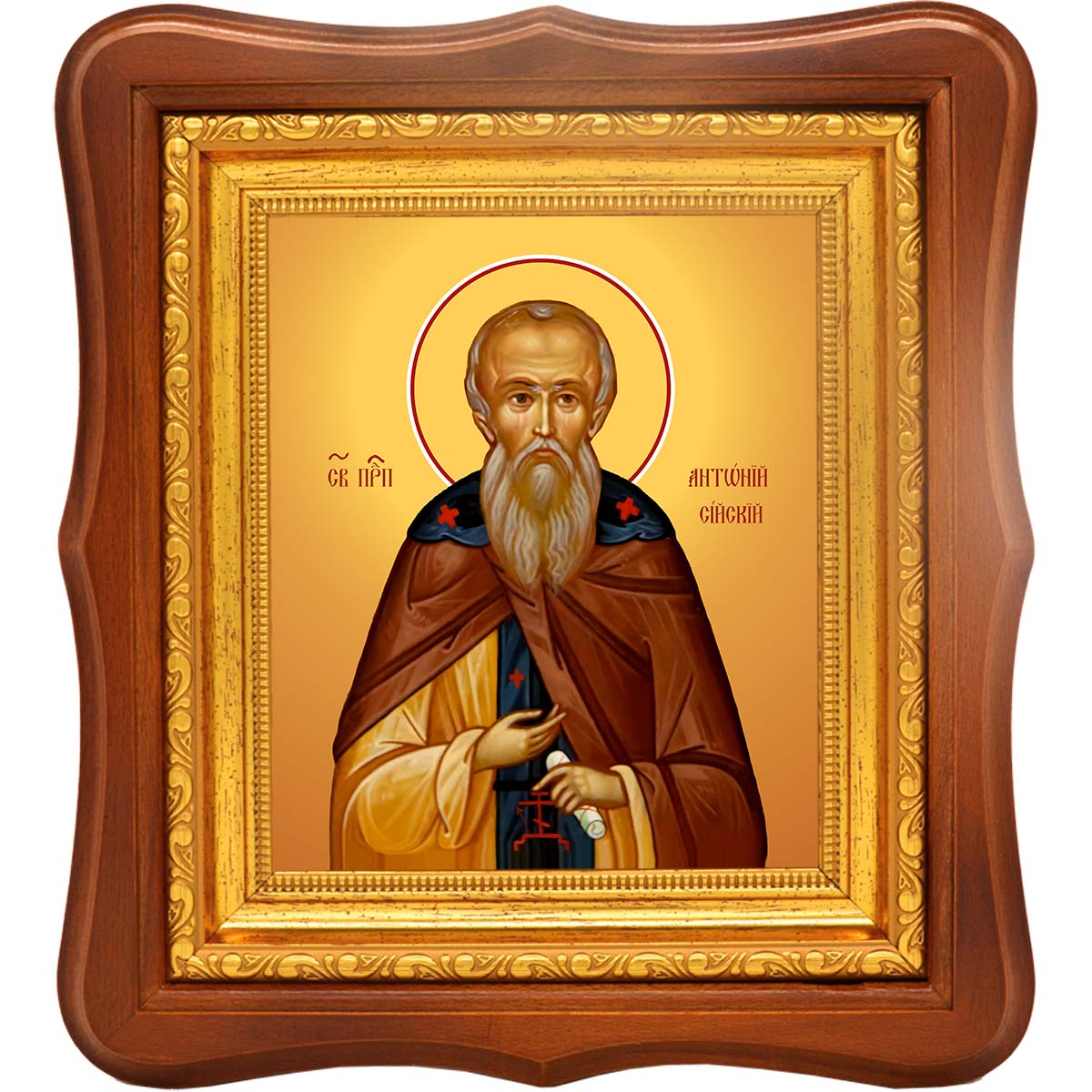 Преподобный Антоний Сийский, в миру Андрей, родился в семье богатого земледельца в селе Кехта близ Северной Двины. В детстве получил хорошее воспитание, много читал и выучился иконописи. Лишившись родителей, Андрей отправился в Новгород и пять лет служил там у боярина. Затем женился, но жена его через год умерла. Тогда Андрей решил посвятить себя иночеству. Он роздал имущество нищим и как странник пошел на реку Кену в Пахомиеву пустынь. Преподобный Пахомий постриг его с именем Антоний. Вскоре его посвятили в сан иеромонаха, и преподобный с благословения игумена один совершал богослужения. Вместе с иноками обители он выходил лишь на труды для общих монастырских нужд. Из любви к уединению преподобный Антоний оставил Пахомиеву пустынь, выбрав из монастырской братии двух спутников, и поселился на Михайловом острове, с одной стороны омываемом Сией, а с другой – окруженном озерами. В этом суровом краю в дремучих чащах в 1520 году Антонием была выстроена часовня. Но расчищать лес стоило тяжких трудов, и спутники Антония стали роптать на него. И тут неожиданно неизвестный человек стал доставлять им пропитание, жертвуя также и деньги на благоустройство. Сийская обитель стала знаменитой, ее часто посещали жители окрестных селений. И вновь преподобный Антоний, взяв одного ученика, удалился в еще более глухое место на озере Палунь. Там, в уединенной келлии, он прожил три года. Когда игумен Феоктист отказался управлять Сийской обителью, братия упросила преподобного вернуться к ним. Он склонился к просьбе иноков, вновь принял игуменство и благочестно управлял монастырем до своего преставления в 1556 году, когда ему было 79 лет.