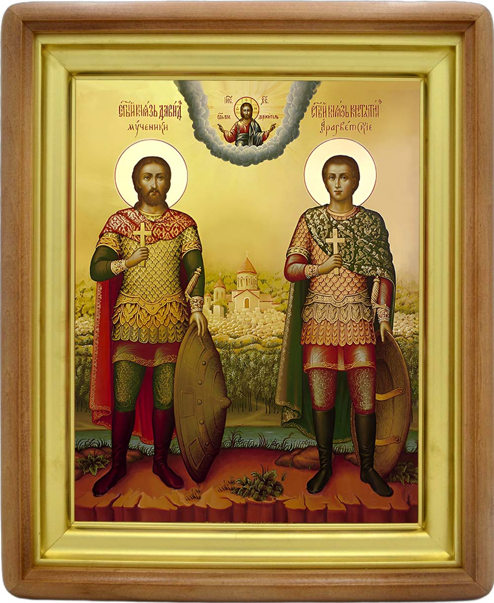 Святые мученики Давид и Константин, князья Арагветские, с детства воспитанные в православной вере, были не только достойными правителями и мужественными военачальниками, но и благочестивыми христианами. Храбро защищали святые братья Грузию от мусульманских завоевателей. Но силы были неравными. Арабский военачальник Мурван-Абдула-Касим, захватив братьев-князей в плен, пытался льстивыми обещаниями склонить их к принятию мусульманства. Но они твердо исповедали Христа. Тогда Мурван-Кру ("кру" – глухой) с помощью чародеев хотел добиться отречения их от православной веры. Но святые братья Давид и Константин все ухищрения языческого суемудрия преодолели молитвой. Видя непреклонность святых исповедников, магометанин приказал подвергнуть их жестоким мучениям, а затем утопить в реке Риони (в 740 году). Река вынесла тела братьев, освещенные тремя столпами света. Христиане взяли тела святых мучеников из реки и погребли в пещере горы Цхалцители в городе Кутаиси.