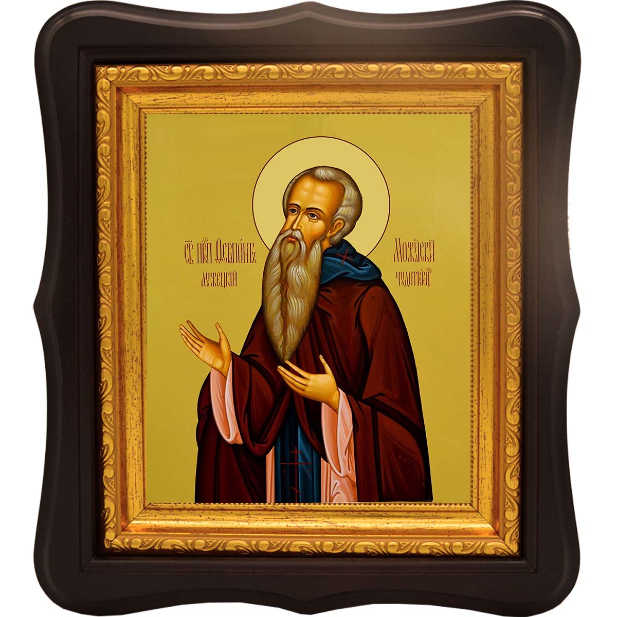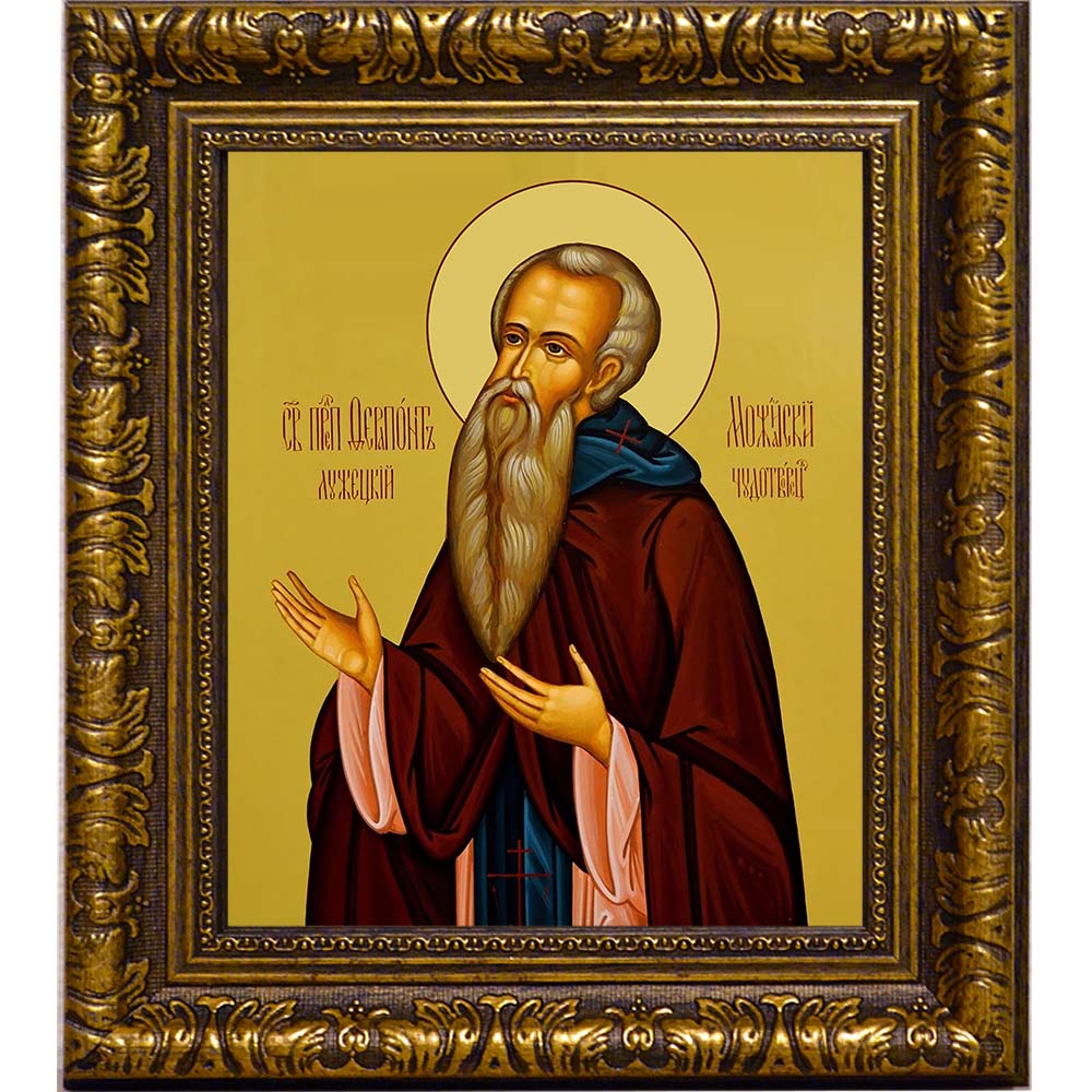 Преподобный Ферапонт Белозерский — в миру Феодор Поскочин — дворянин из Волоколамска. Принял постриг в 40 лет в Московском Симоновом монастыре, где сдружился с прп. Кириллом Белозерским. Вместе ушли на Белоозеро. После совместного жительства Ферапонт основал свою пустынь (1398 г.) между озерами Бородавским и Павским (будущий Ферапонтов монастырь). Отказался от игуменства по смирению. В 1408 г. по просьбе князя Андрея Можайского основал под Можайском Лужецкий монастырь в честь Рождества Богородицы, где стал архимандритом. Скончался в 1426 г. 90 лет от роду. Мощи обретены нетленными в 1514 г.