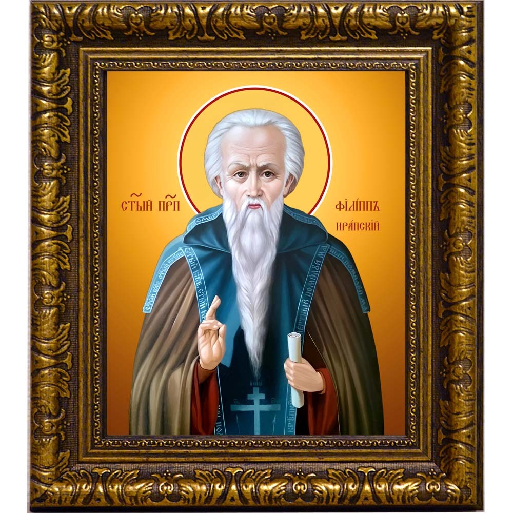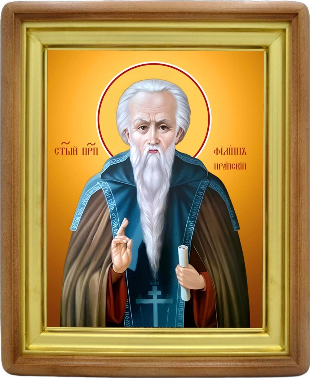 Икона преподобного Филиппа Ирапского - именная икона мужчин по имени Филипп. Дни памяти 27 ноября и 21 июня (переходящая) - Соборы Новгородских и Вологодских святых. Икона освящена.