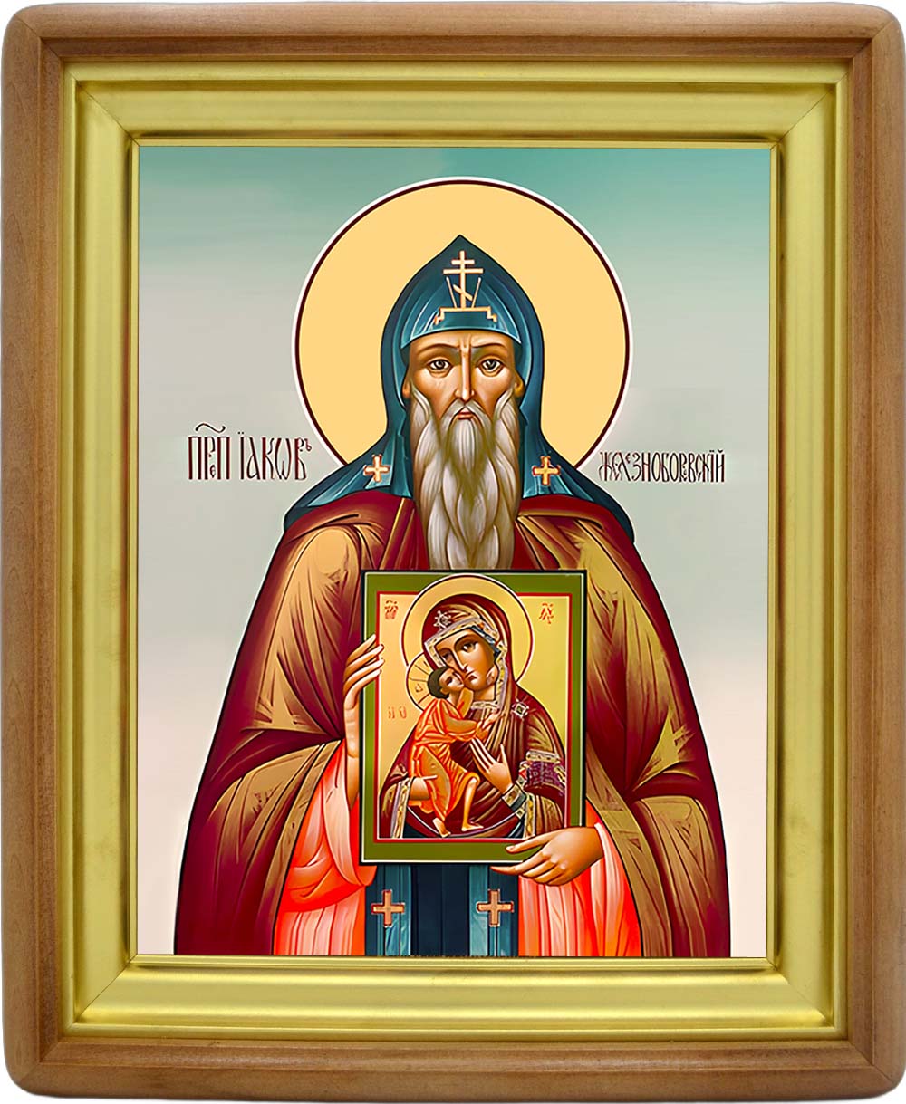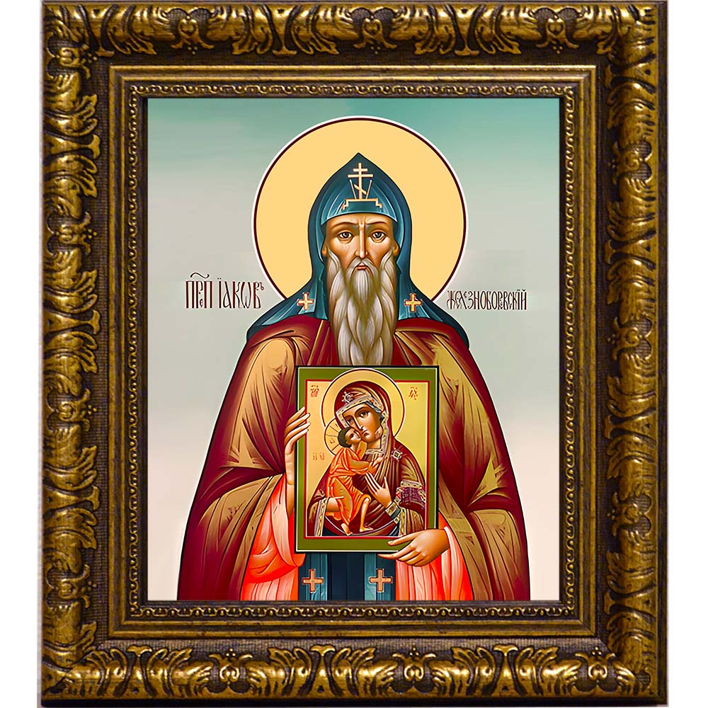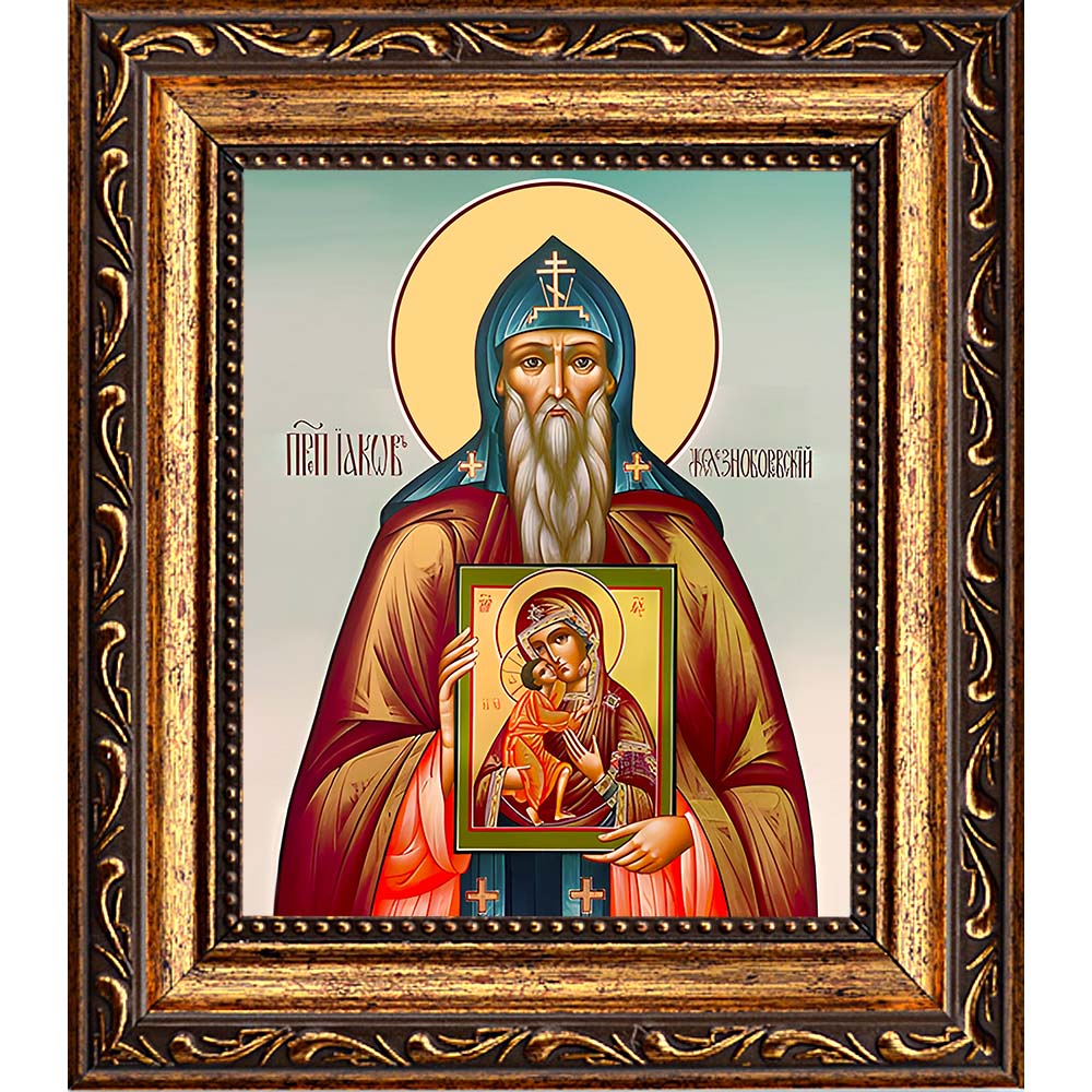 Икона преподобного Иакова Железноборовского - основателя Свято-Предтеченского Иаково-Железноборовского мужского монастыря, - именная икона мужчин по имени Яков. День памяти: 24 апреля. Икона Освящена.