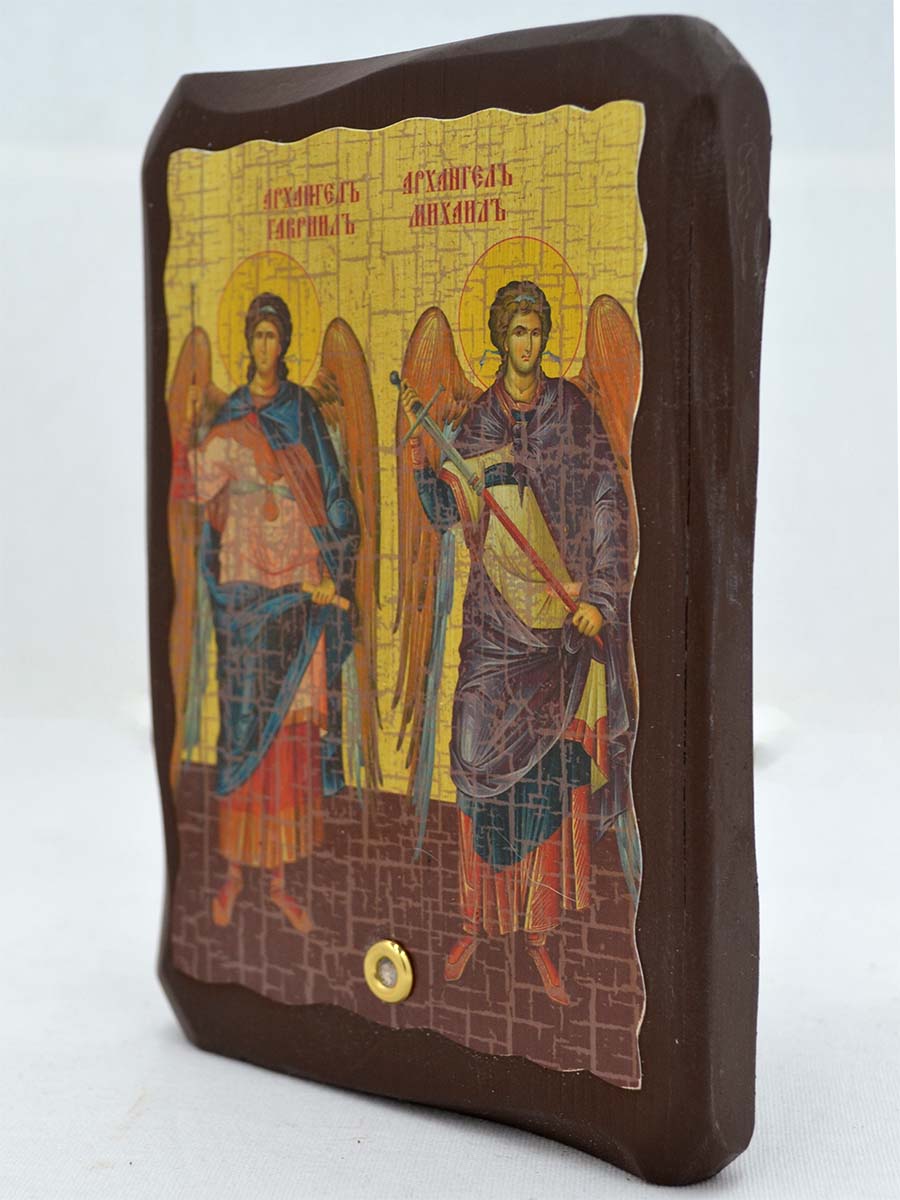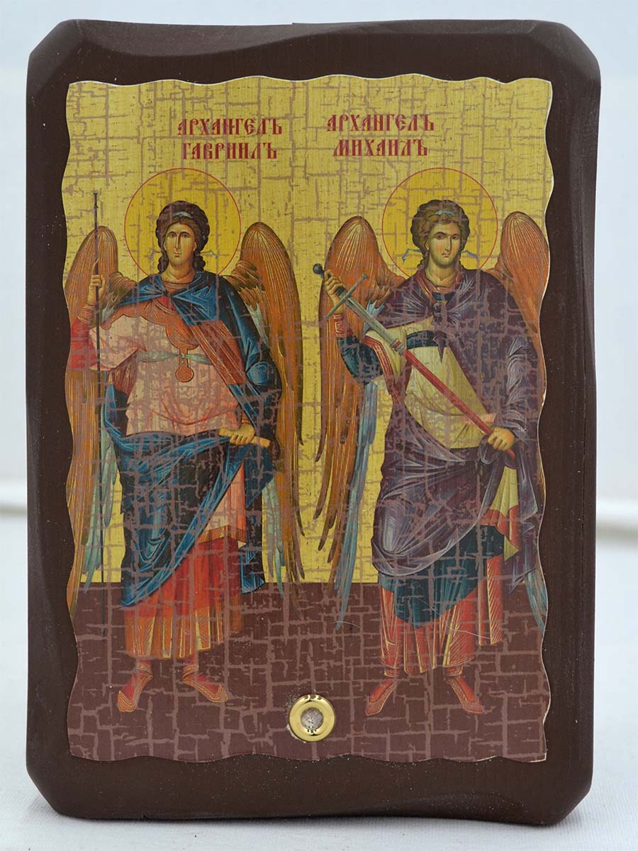 Икона Архарнгелов Михаила и Гавриила подойдет как для личной молитвы, так и для подарка близкому человеку, которому нужна защита.