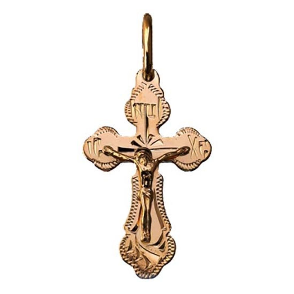 Крестик золотой двухсторонний с ручной гравировкой - элегантный символ православной веры. Подойдет женщине, девушке.