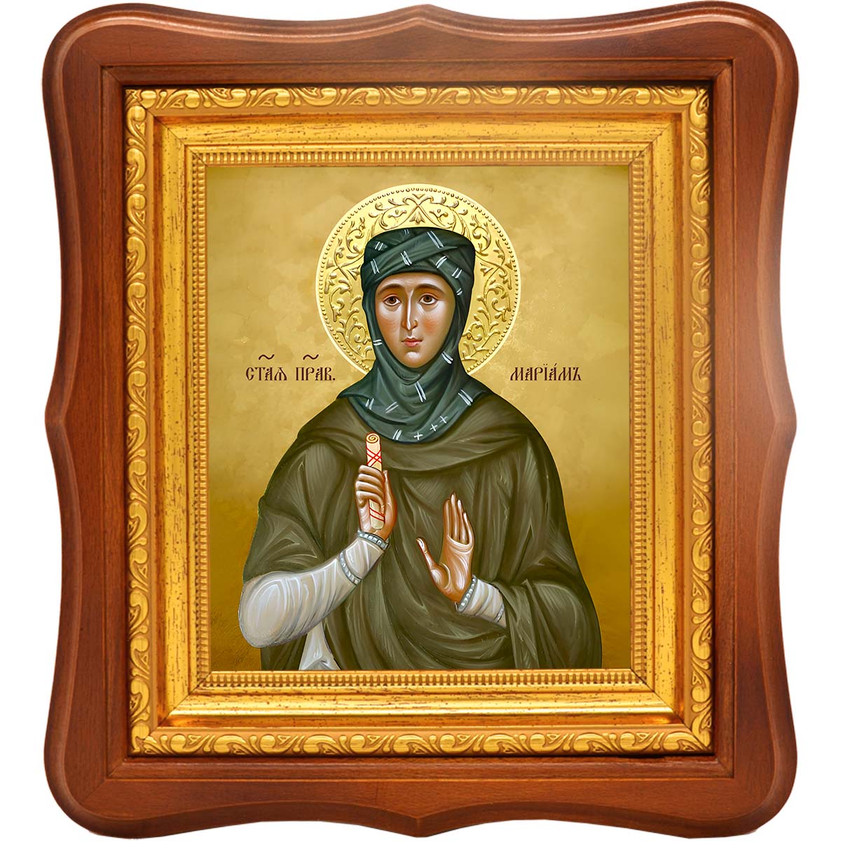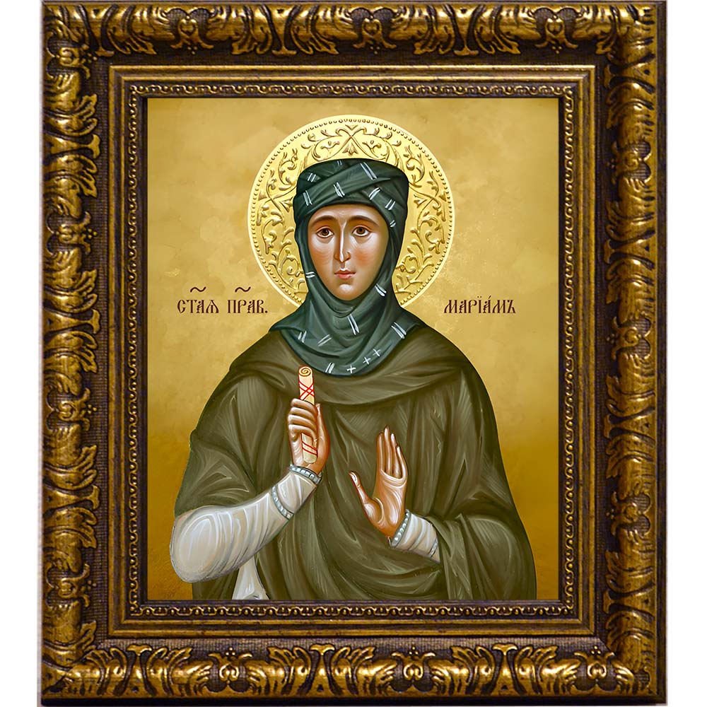 Икона пророчицы Мариам - именная икона женщин по имени Мариам. Дни памяти: 3 января (переходящая) - Неделя святых отец; 15 апреля (переходящая) - Собор Синайских преподобных; 27 декабря (переходящая) - Неделя святых праотец. Икона освящена.