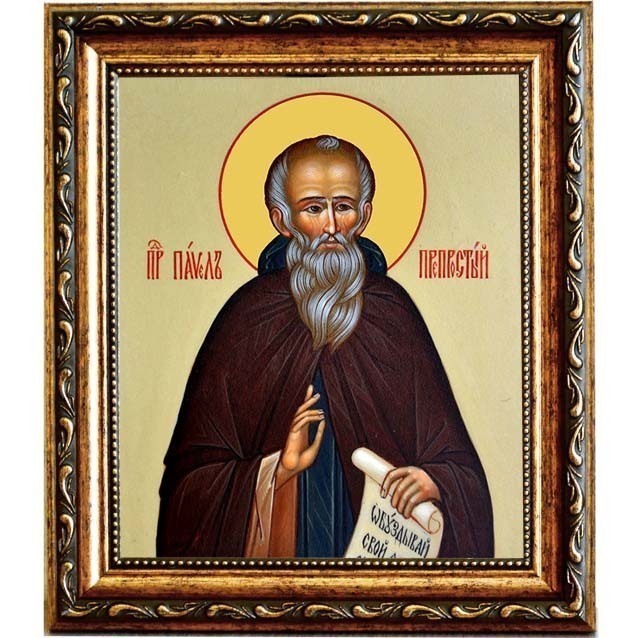 Преподобный Павел Препростый жил в IV веке. Препростым он назван за свое простосердечие и незлобие. Преподобный был женат, но, узнав о неверности супруги, оставил ее и удалился в пустыню к преподобному Антонию Великому (память 17 января). Павлу было уже 60 лет, и святой Антоний сперва не принял Павла, почтя его неспособным к тяжелой отшельнической жизни. Три дня стоял Павел у келлии подвижника, сказав, что скорее умрет, чем уйдет отсюда. Тогда преподобный Антоний поселил Павла к себе, долго испытывал его терпение и смирение тяжелым трудом, суровым постом, ночными бдениями, неустанным пением псалмов и земными поклонами. Наконец преподобный Антоний разрешил Павлу поселиться в отдельной келлии.