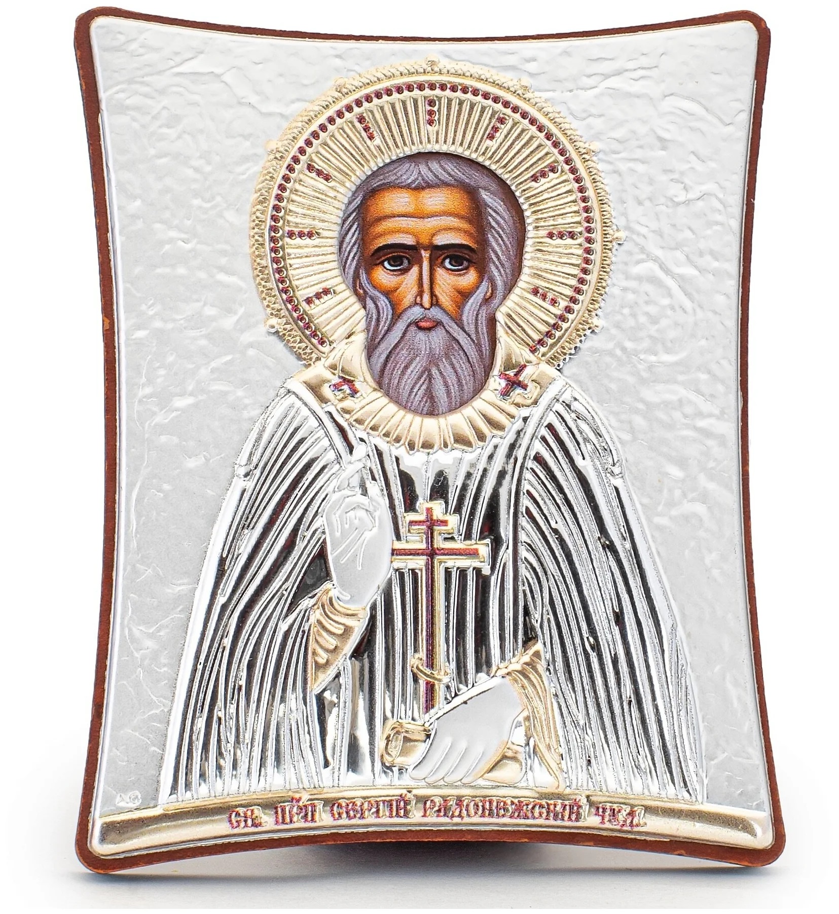Красивая греческая икона святого Сергия в серебряном окладе - чудный подарок как ребенку, так и взрослому человеку. К преподобному Сергию можно обращаться с самыми разными молитвами - о помощи в учебе или работе, успехе в добрых начинаниях. Святой Сергий Радонежский защищает путешественников в пути, помогает в делах материальных и, конечно, в душевных переживаниях.