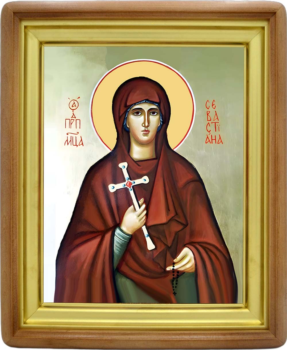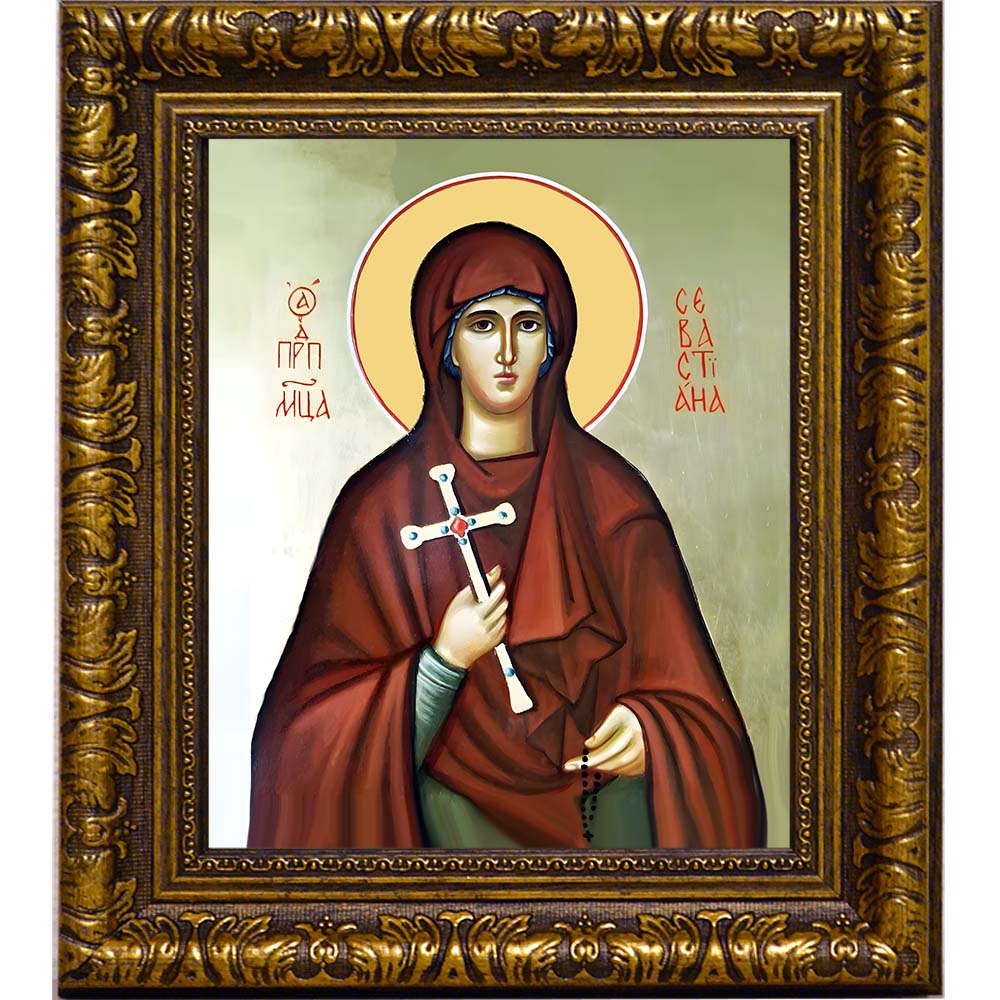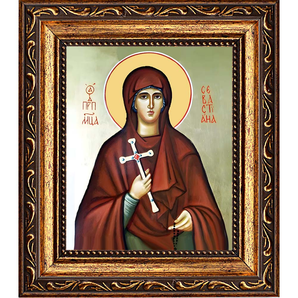 Икона преподобномученицы Севастианы Агеевой-Зуевой - именная икона женщин по имени Севастиана. Дни памяти: 7 февраля (переходящая) - Собор новомучеников и исповедников Церкви Русской; 20 июня - Собор святых Ивановской митрополии; 11 июля; 6 сентября - - Собор Московских святых. Икона освящена.