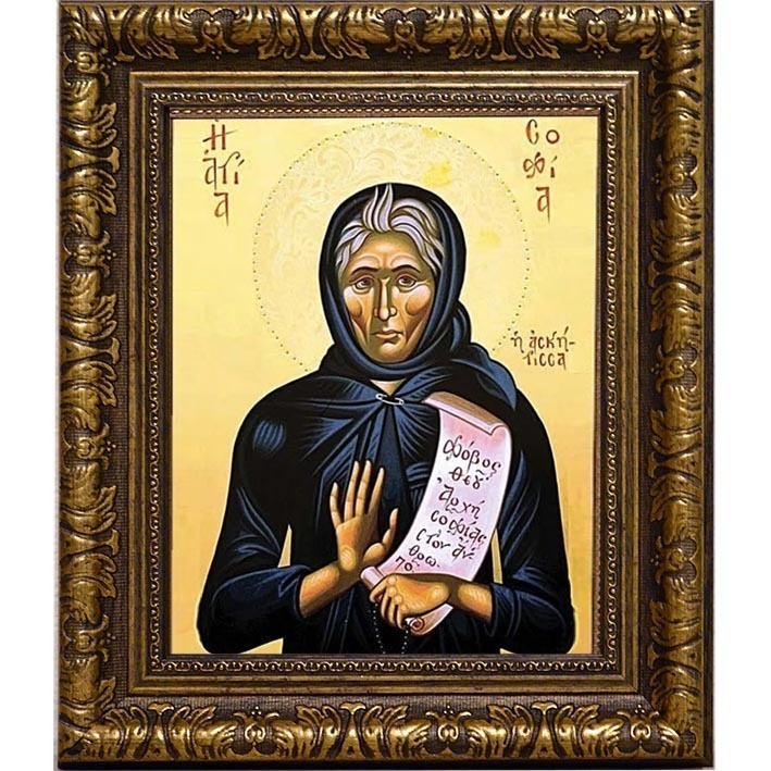 София пришла в монастырь в возрасте 44 лет. Чтобы никого не смущать своей красотой, она мазала лицо сажей и копотью из котелков. Она брала зажженные угли без щипцов голыми руками.