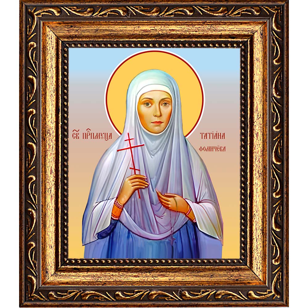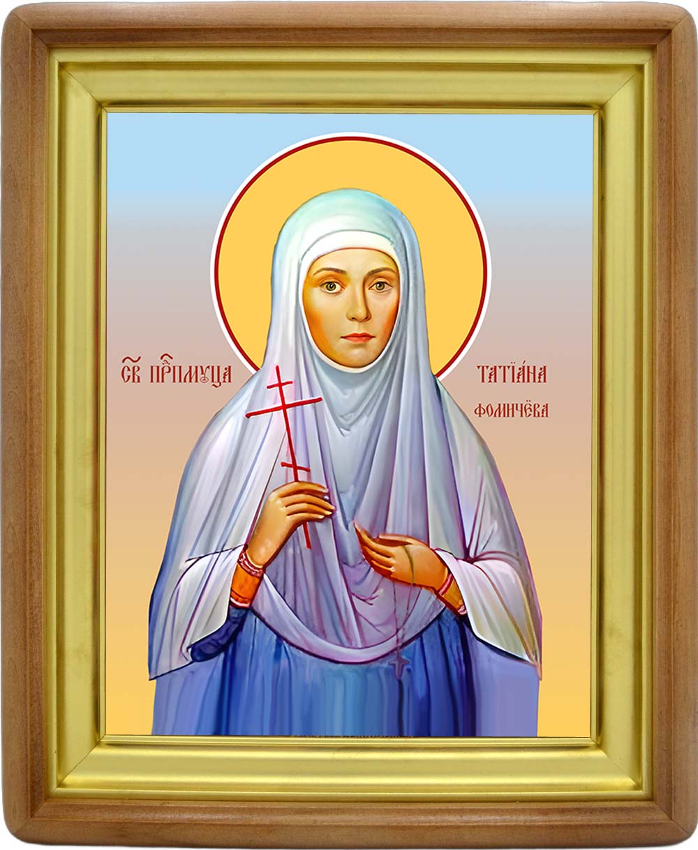 Икона преподобномученицы Татианы Фомичевой - именная икона женщин по имени Татьяна. Дни памяти: 7 февраля (переходящая) - Собор новомучеников и исповедников Церкви Русской; 6 сентября (переходящая) - Собор Московских святых; 3 декабря