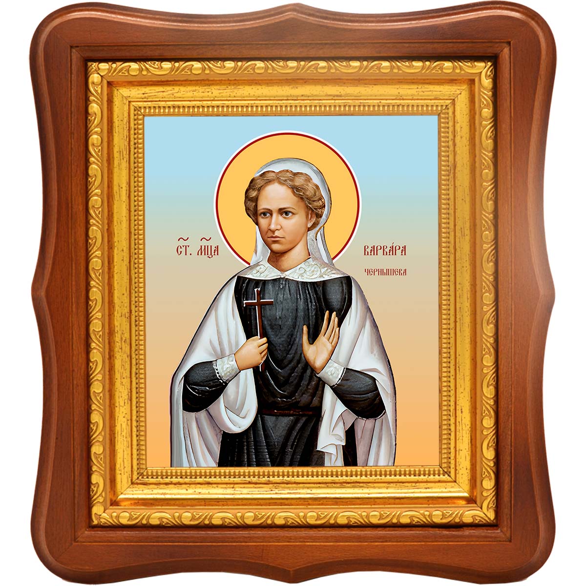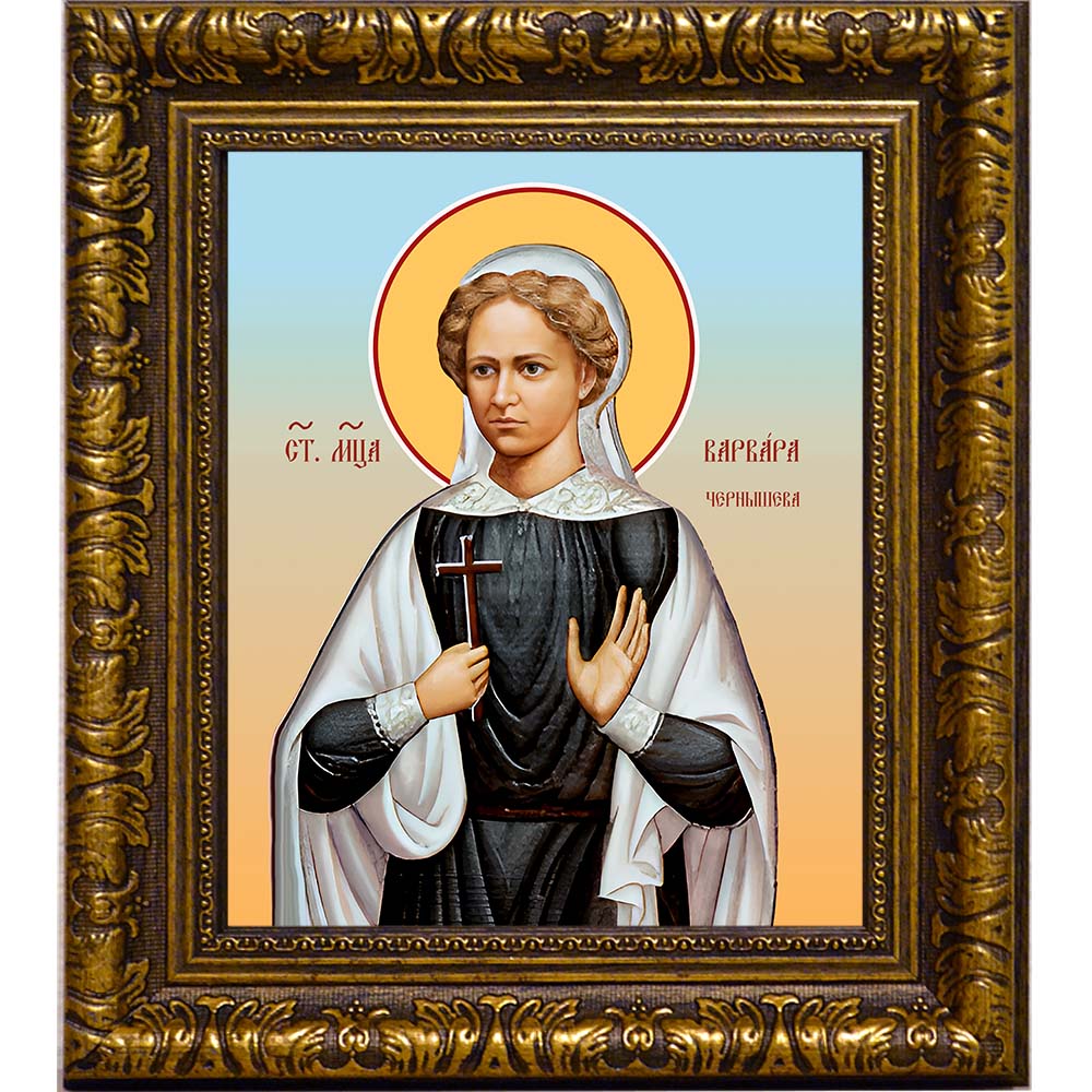 Икона святой мученицы Варвары Чернышевой - именная икона женщин по имени Варвара. Дни памяти: 2 января; 7 февраля (переходящая) - Собор новомучеников и исповедников Церкви Русской; 21 июня (переходящая) - Собор святых Удмуртской земли.