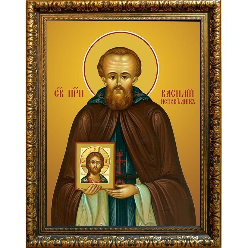 Преподобный Василий исповедник был иноком и пострадал в царствование иконоборца Льва Исавра (717–741). Когда началось гонение на почитателей святых икон, святой Василий вместе со своим сподвижником преподобным Прокопием (память 27 февраля) был предан многим истязаниям и заключен в темницу, где оба мученика томились долгое время, до самой смерти нечестивого императора. Когда святых исповедников Василия и Прокопия освободили вместе с другими почитателями святых икон, они продолжили свой иноческий подвиг, наставляя многих в православной вере и добродетельной жизни. В 750 году преподобный Василий мирно скончался.