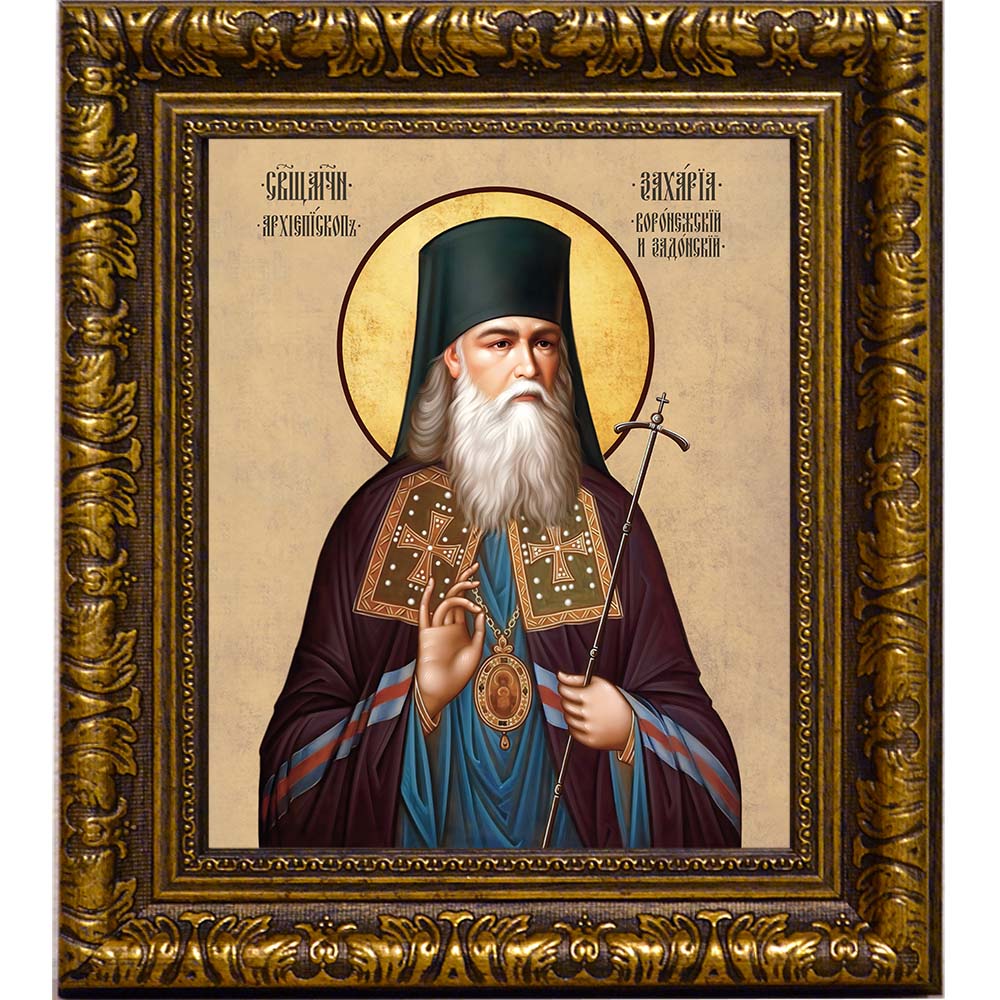 Икона священномученика Захарии Воронежского - именная икона мужчин по имени Захар. Дни памяти: 7 февраля (переходящая) - Собор новомучеников и исповедников Церкви Русской; 23 августа - Собор новомучеников и исповедников Соловецких; 17 сентября - Собор Воронежских святых; 22 сентября; 23 сентября - Собор Липецких святых. Икона освящена.